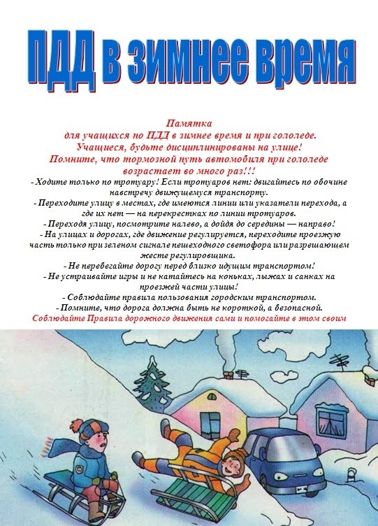— Избегайте использования телефона за рулем. Внимание должно быть сосредоточено на дороге! - Запрещено кататься на санках и лыжах рядом с дорогами!