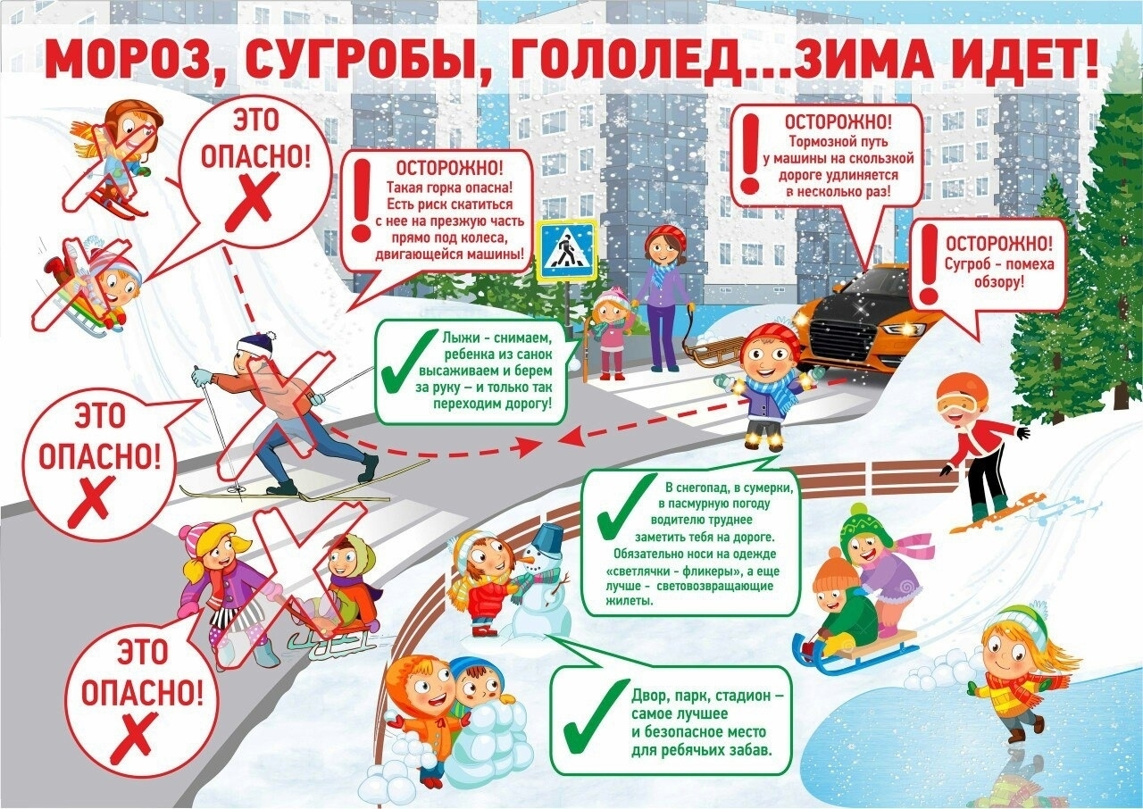 — Проводите время на специально отведенных для этого участках — катания на лыжах и санках должны происходить вдали от проезжей части. - Безопасность детей